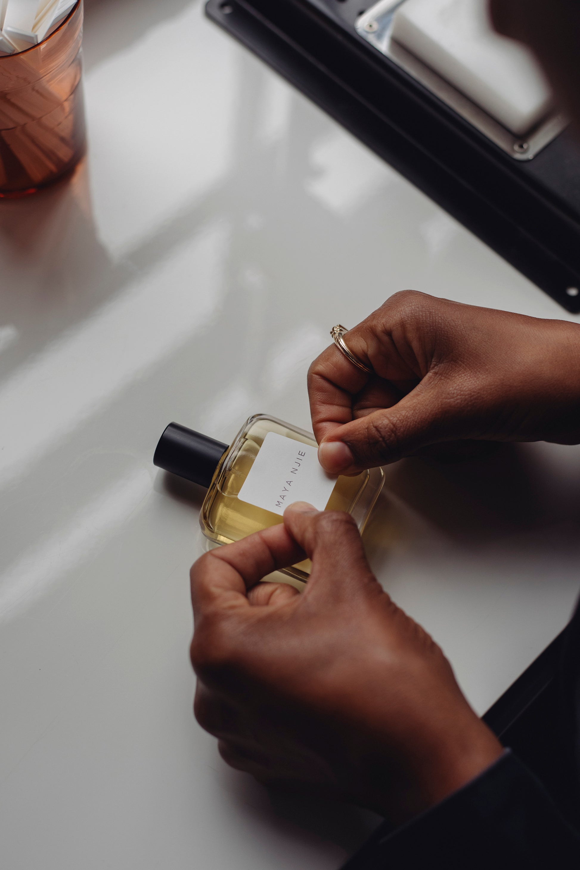 These are the final Liquid Amber perfumes, sold as seen in the photo with the Maya Njie label and glass bottle. It is a spicy and warm amber composition that is creamy and lactonic. The woods are smokey and resinous with hints of incense. It’s a sensual, enveloping and habit-forming experience - seize it whilst you can, once it’s gone it’s gone.